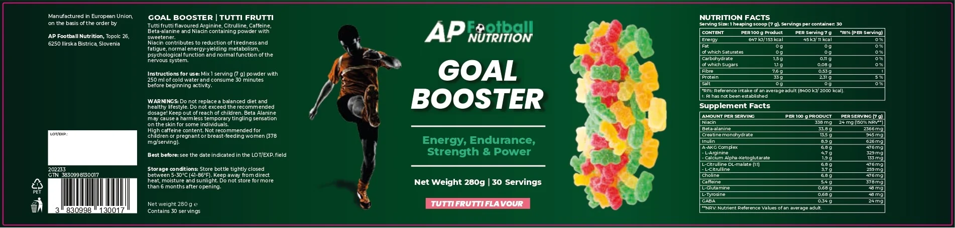 Goal Booster je napitek za uporabo pred treningom ali tekmo, zasnovan za maksimalno pripravljenost.
