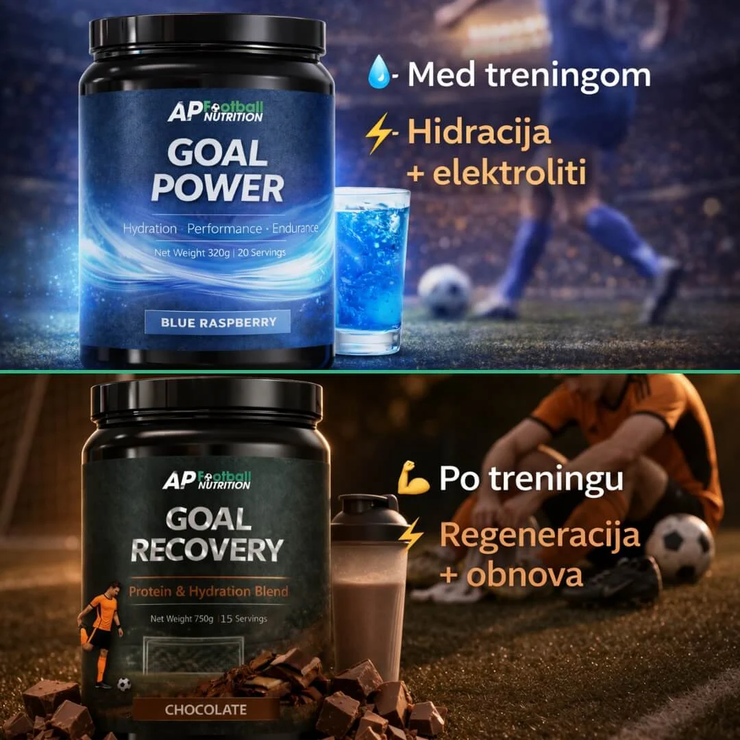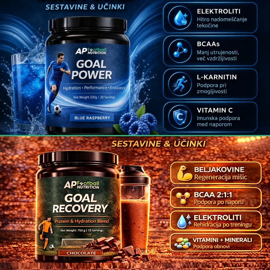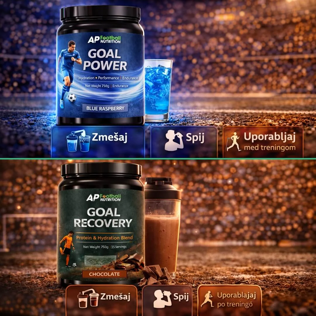 Ta paket združuje Goal Power + Goal Recovery, kar pomeni, da imaš pokrito celotno nogometno rutino – od hidracije in podpore med naporom do recovery rutine po treningu ali tekmi.