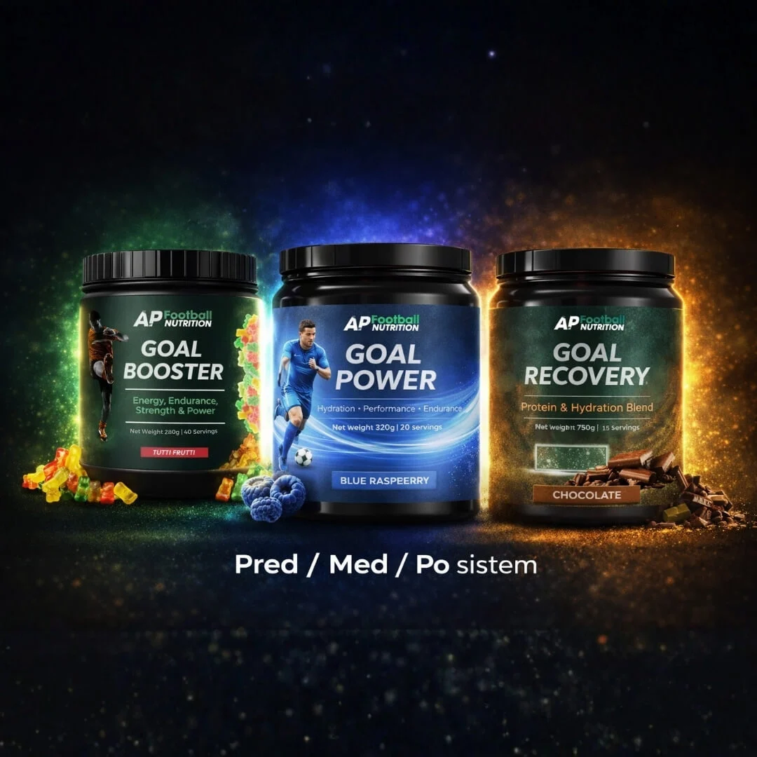 Goal Booster + Goal Power + Goal Recovery je popoln paket za nogometaše in aktivne posameznike, ki želijo pokriti celotno rutino – pred, med in po treningu ali tekmi.